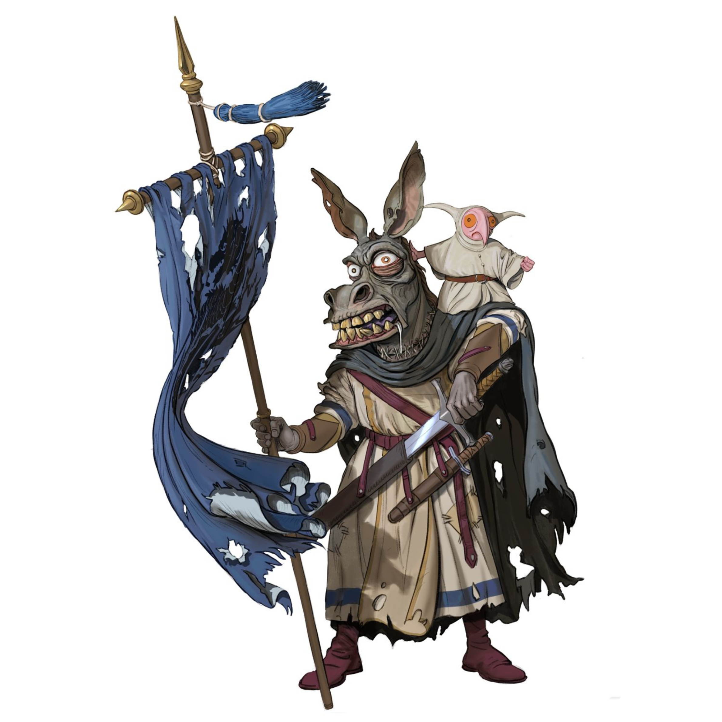Despite not wanting to be overloaded with options, I fear I have this exact problem with my pick for Shades. Greymair's original head was lost in the collapse of Moonreach, so he's had a donkey’s head stitched on. How about something else though? So many choices! Maybe the party hat goblin you've seen for all our 10th anniversary stuff, or the catastrophe goblin on the cards, or how about some more esoteric creature like a platypus? Too many options!