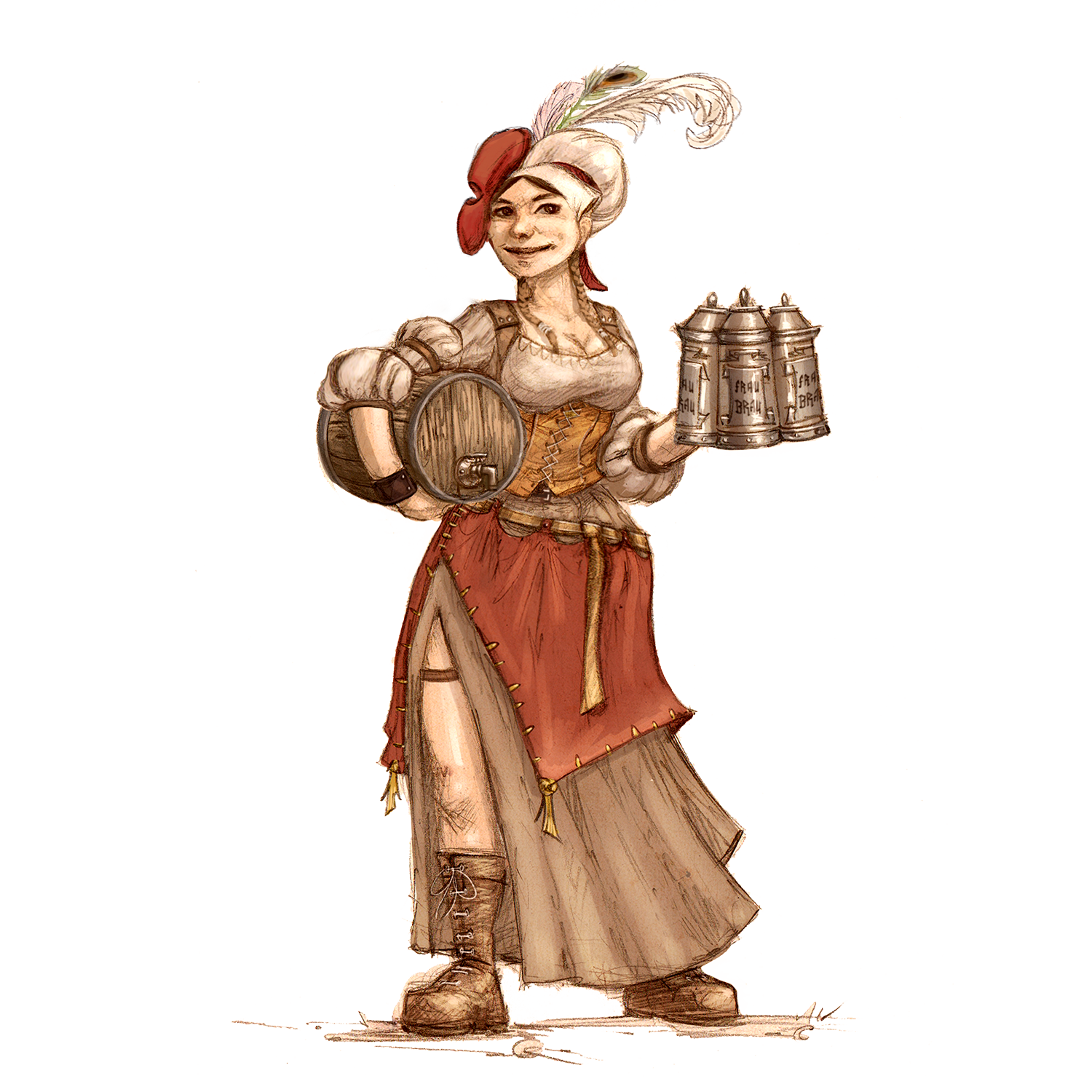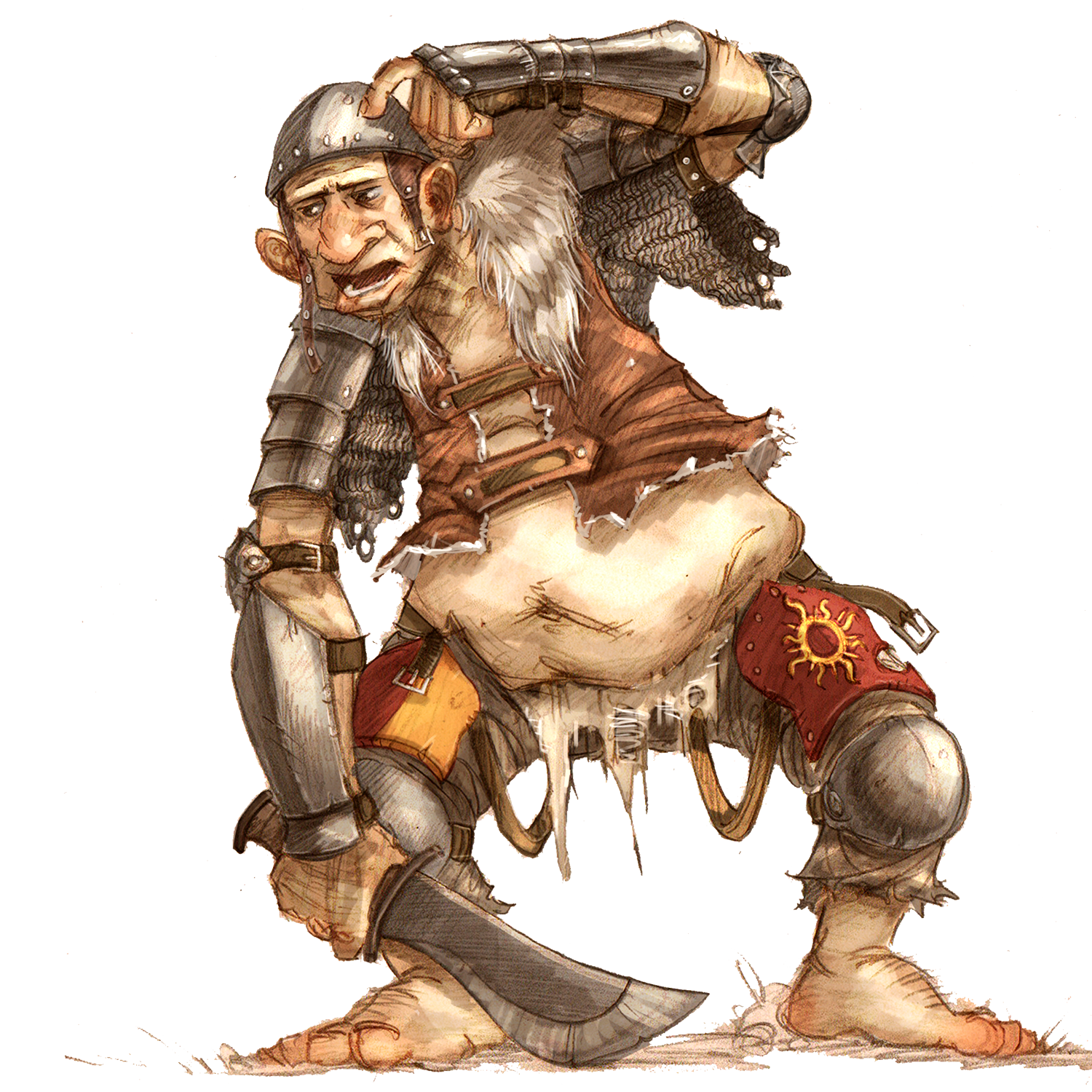 Gotchgut was the first big guy model we made so it naturally grabbed my attention for nostalgia value. It tickled me way back in the day that he was the Egg and Crown’s uncontested drinking champion, until Vicious Syd came along and drank him under the table. So the idea is to show the OG drinking duo reunited and toasting to 10 years. Vicious Syd could be perched on his shoulder (as a fully separate piece so non-goblin troupes who use Gotchgut can have him raising a tankard alone if they prefer).